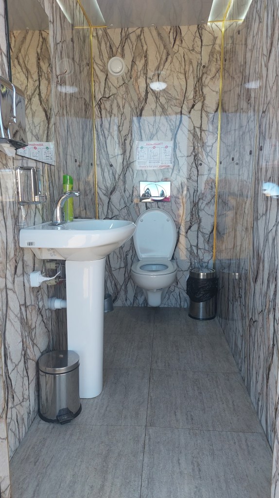 As I mentioned in my last post, I have been pleasantly surprised by the non-basic nature of yurt campting. Well, tonight is a definite upgrade – bigger yurts, real beds (it was pallets and mattresses last night), and marble bathrooms (see below). These yurts and the experience of staying in Song Kul was simply magical, and I can not recommend it highly enough – I would love to come back and stay for longer.
