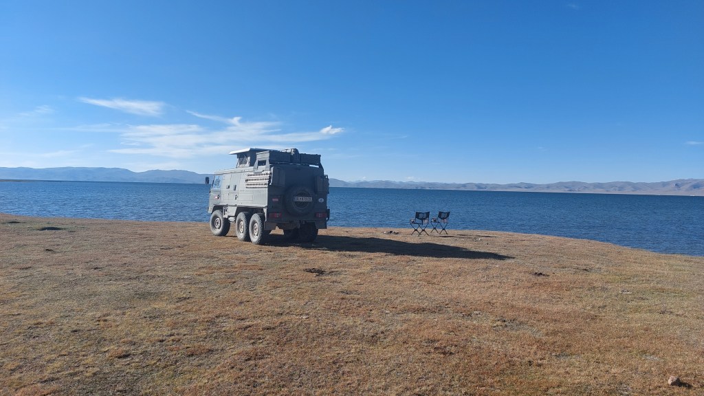 Having imposed ourselves for quite long enough, we continued our journey over the mountains and along the valley. Whilst the views are wonderful, the road was less so. It is an unsealed, rutted gravel track stretching for many kilometres. I would understand if we were in really remote, but this is a key route used by locals ad tourists and even includes the main road to the country’s largest mine – and yes, coal laden trucks bumped along the same roads. To give you an example, people in the group with fitbits are averging around 15,000 steps from the amount of bouncing! Our driver Anatoly is excellent, I would have broken the van by now.