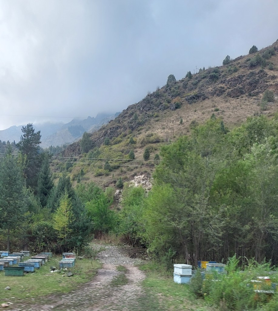 Today was another long drive and in very different but still beautiful scenery. Tonight, we are staying in a Soviet holiday camp, which is actually rather nice if one overlooks the architecture of the building and focuses on the view of the Naryn reservoir. This is the largest reservoir in Kyrgyzstan and feeds the dams, which produce 75% of Kzyghastn’s energy (more on this tomorrow).