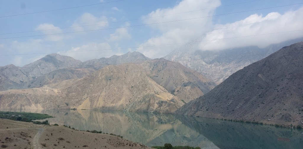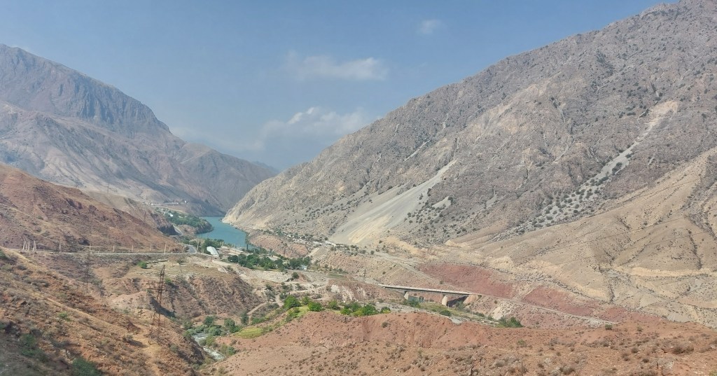 We drifted down the mountains and into the Feranga valley with stops so we could admire the two hydroelectric dams that provide 75% of Kyrgyzstan’s power. As I promised in my last post, there are some controvesies around Kyrgyzstan building more dams and using its power in this way as the neighbouring stans i.e. Kazakhstan and Uzbekistan are reliant on Kyrgyzstan for their water, and by daming the rivers, the levels in the resevoirs are dropping, and its these resevoirs which provide water to (particularly) Uzbekistan. It’s also contrversial as recently a Kyrgyzstani resevoir has been “given” to Uzbekistan, and the gift includes the obligation to ensure supply to the resevoir. Anyway, the Kyrgyzstani’s are evidently proud of their dams, so it was a key stop on today’s journey.