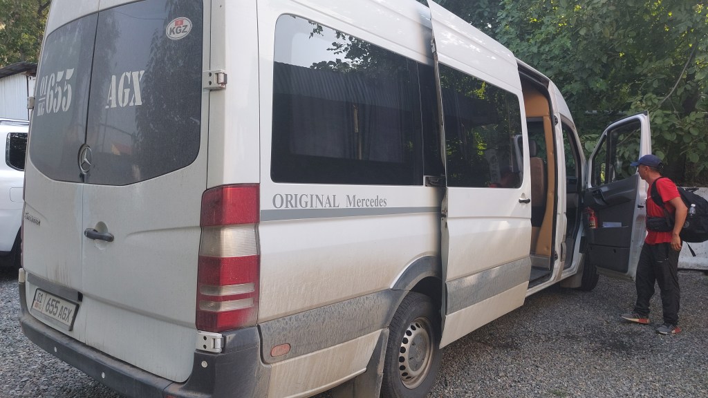 So, this morning, it was back in the minibus for the last long day of driving. I should probably take a moment to comment on the bus (as opposed to the roads), unfortunately I am travelling with a group of older (albiet lovely) people who all feel the cold. I am often sitting in the bus a wee bit sweaty with others wearing additional jumpers and coats. However, I have now worked out the best seat (for me anyway), its front single seat on the right – you get a slight feeling of ventilation from the vents at the back of the seat, and a draft from the windows being open for Anatoliy and Miko. Its only downside is that it has nothing to hold onto, which can be somewhat terrifying as we zip around corners and down mountains. Anyway, last day in the minibus, so I felt it deserved to be photographed: