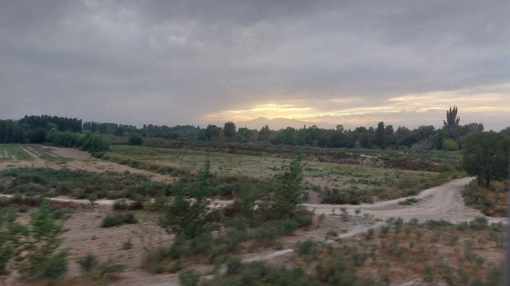 We left Andijon at 3.55pm local time (bang on time) and I settled back to enjoy the scenery of Uzbekistan, which is nice enough although a little dusty and certainly it does not have the space and big sky feeling of Kyrgyzstan. What I did see was lots of farm land, including fields of cotton. During Soviet times, Uzbekistan was turned into a key producer of cotton, and today, it is the 5th largest cotton producer in the world. This is hugely problematic as Uzbekistan is very hot and does not have enough water at the best of times, without taking into account the need to flood cotton fields. Also, until very recently, all school-age children, teachers, and other government workers were required to spend their 3 month summer holiday picking cotton. Not my (or probably anyone else’s) idea of a fun time… The ending of this is one of the key policy of the new president Shavkat Mirziyoyev (following the death of Karimov in 2016) who has also started to work to improve relationships with neighbouring countrie including the opening of the borders which has made this trip possible! Uzbekistan is still a tightly controlled state (more on this below), but these are some (very small) positive steps and I am interested to compare my experiences here with the more democratic (but arguably more corrupt) Krygzstan