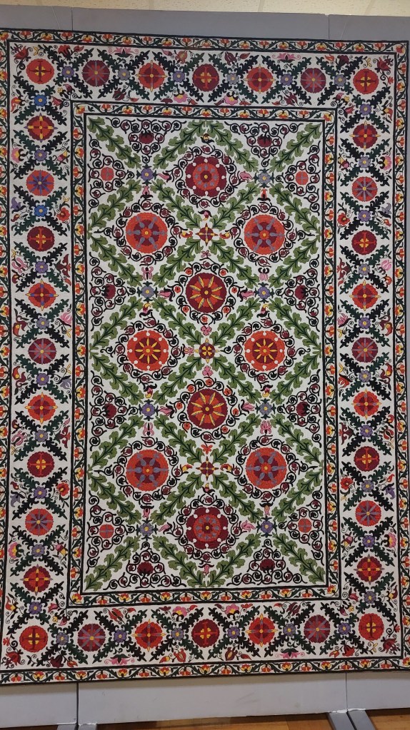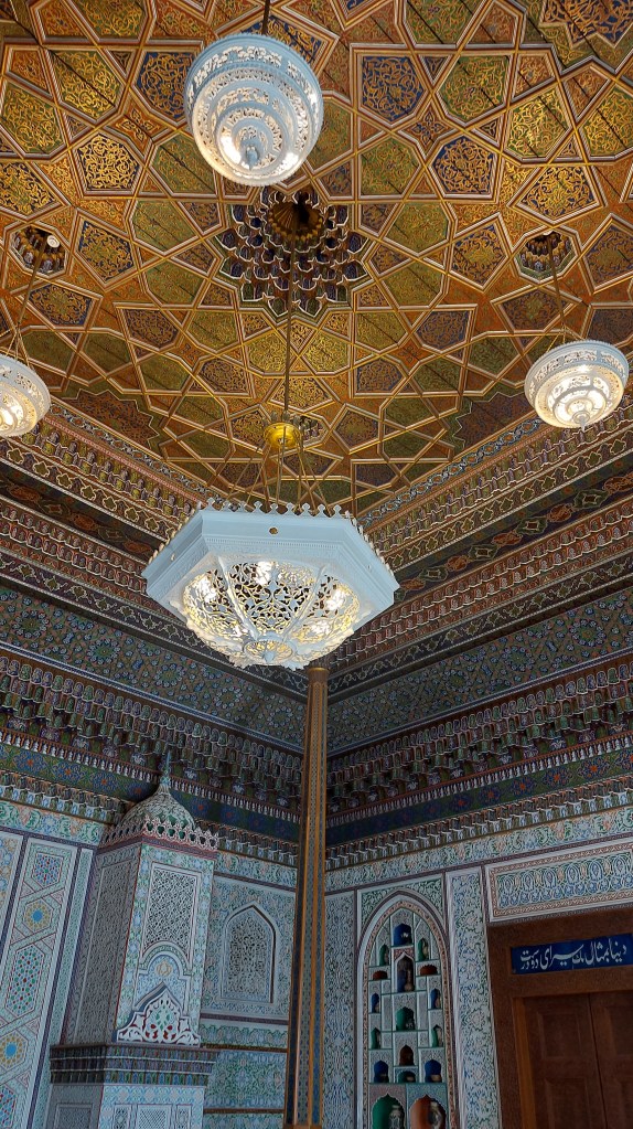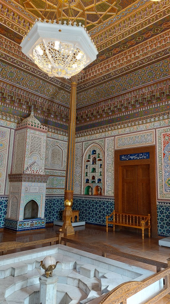 Tashkent has a number of museums including National Histroy Museum (closed on Monday’s but I hope to visit when I loop back to Tashkent at the end of this trip), the Fine Art Museum (also closed on Monday’s), so we went to the Museum of Applied Art and I am very glad that we did. It is in the former palace of Russian Diplomat Alexander Aleaxandrovich Polotsev who was an entusiast of Uzbek and Asian design and had the house readjusted and refurbished to fit this style. The interiors are beautiful and it is filled with examples of “applied art” (clue being in the name), and shows just some of the patterns, carpets, ceramics and carvings created in Uzbekistan.