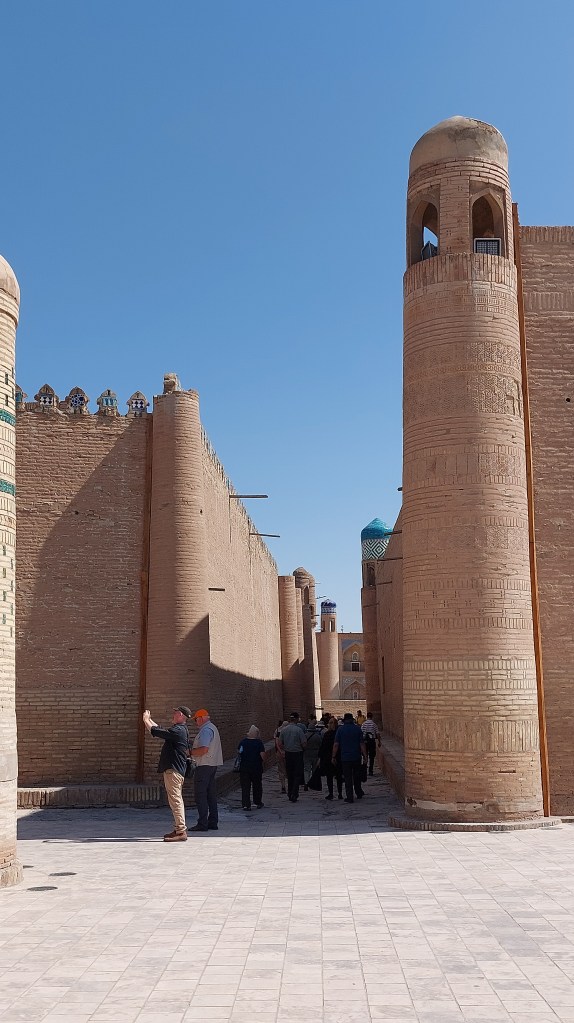 It was only a short flight (1.20h) to Urgench (the nearest airport to Khiva) and on arrival we deplaned (an excellent phrase) and then ambled towards the building which we assumed was the terminal. None of this busing you 50m. There was also only 1 baggage carousel with 2 flights landing it was something of a scrum, this is where a bright yellow rucksack has its advantages. It was then a short drive to Khiva.