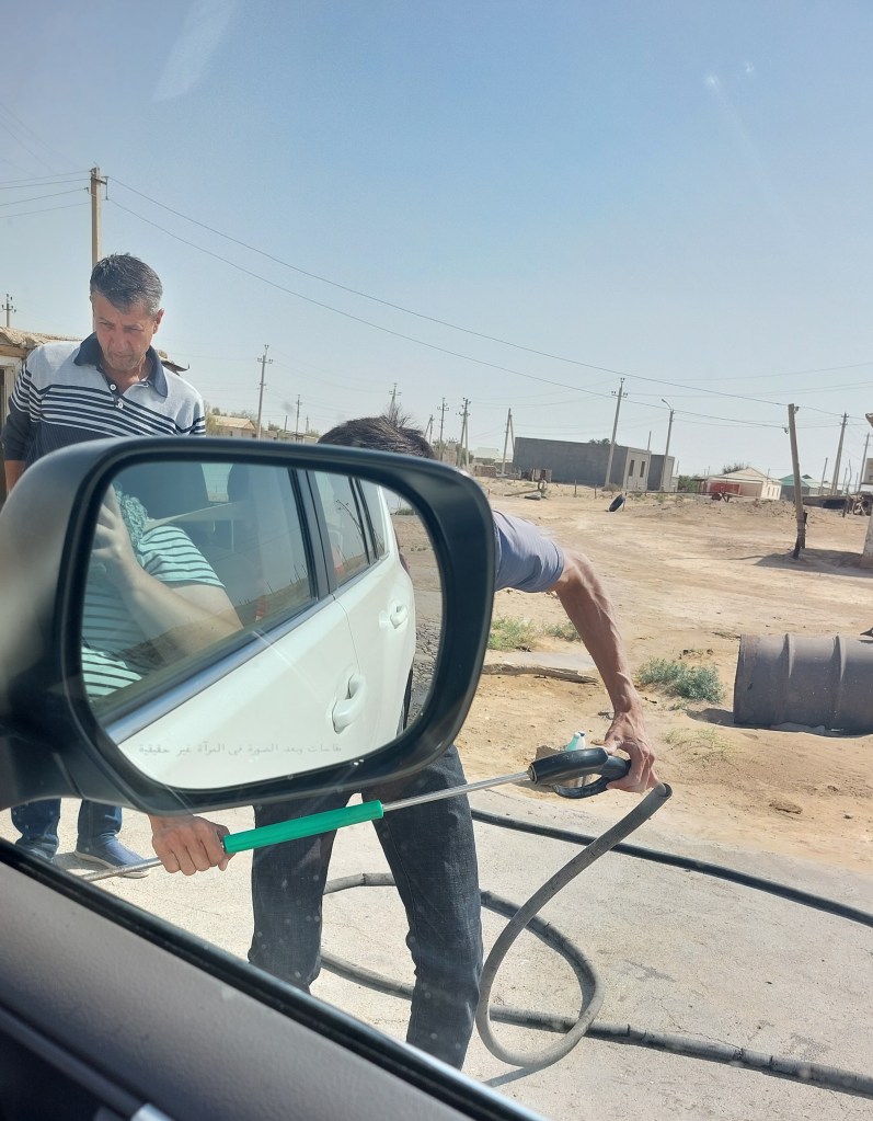 The road did improve as we got closer to Ashgabat, but once we were off the desert road, we had a pitstop where the driver proceeded to extract cleaning materials and give the car a thorough clean. This seemed somewhat odd, but we were told that cars in Ashgabat are fined if they are deemed to be “dirty,” and this fine is higher than that for drink driving! About 10 minutes later, we stopped again at a small village, which had set itself up as the place of the high pressure hose, and the car was blasted all over and wheels given a thorough clean. Evidently, this is taken very seriously.