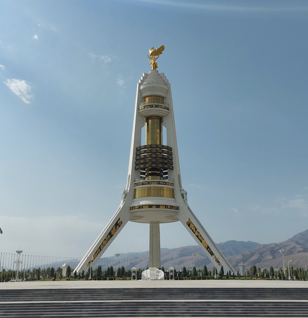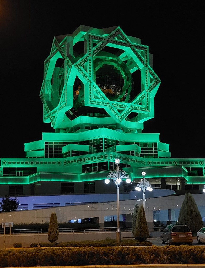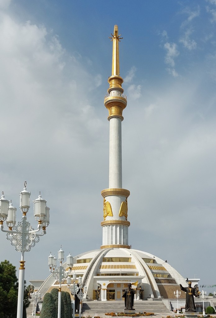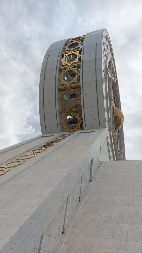Then, on to the Arch of Neutrality. This 95m tall (as 1995 being the year Turmenistan declared its neutraity in conjunction with the UN) and on top is the 1st president “greeting the sun.” Apparently, this monument was originally something of a love monument from the president to the president. However, after his death, it has been repurposed to have more meaning. Photos had to be taken quite careflly here as you can not photograph the watchmen or any army personnel (this applies everywhere in Turkemenistan) I am probably giving an unfair impression here, as there is a lot you can photograph (and are encouraged to photograph), but you do have to be careful.
