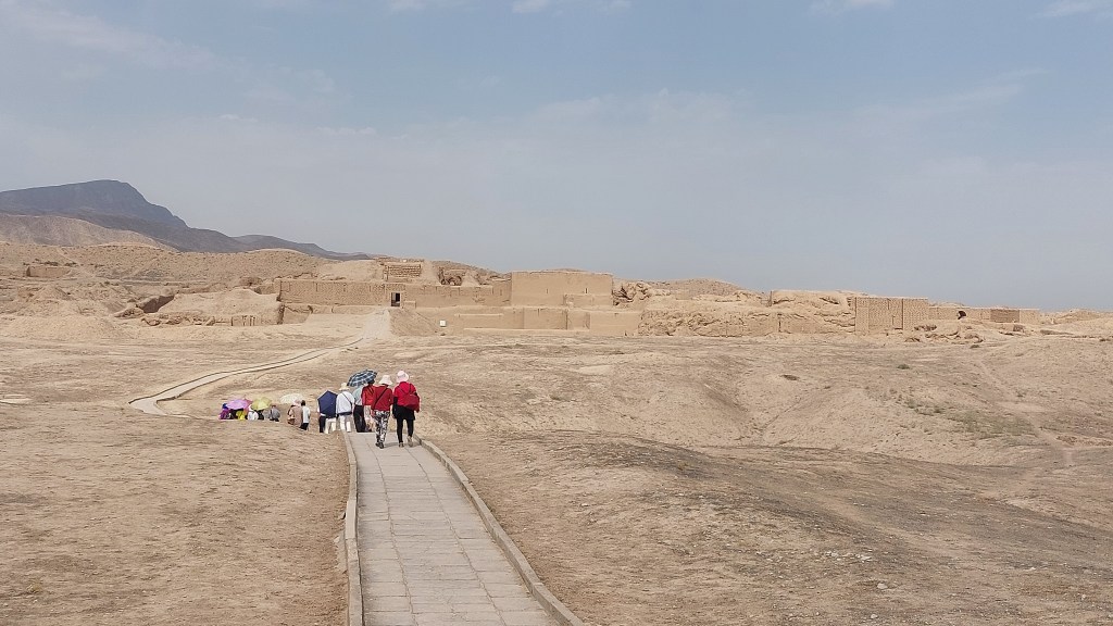 Now, onto the ancient capital of Parthinia, Nisa. The original city was built by the Persians but then conquered by Alexander the Greek. On his death, this part of the empire was owned by a General of Alexander and became the Selucid Empire, it was later captured by the Parthianians it the 5th century and what we can see dates to that period with only minimal restoration. We know that Nisa was the capital and the rulers lived here, but little else. What little survived was then destroyed by the 1948 earthquake. For example, the walls used to be over 20m high, but they’re only about 2m today.