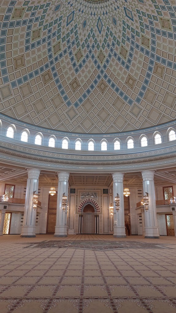 We went on to visit the Turkish mosque (as it was paid for by Turkey and located behind their embassy), which was built in 1998. It is another copy of Istanbul’s blue mosque (like all the way back in Bishkek), and later in the trip, I shall be able to compare the accuracy of this copy.
