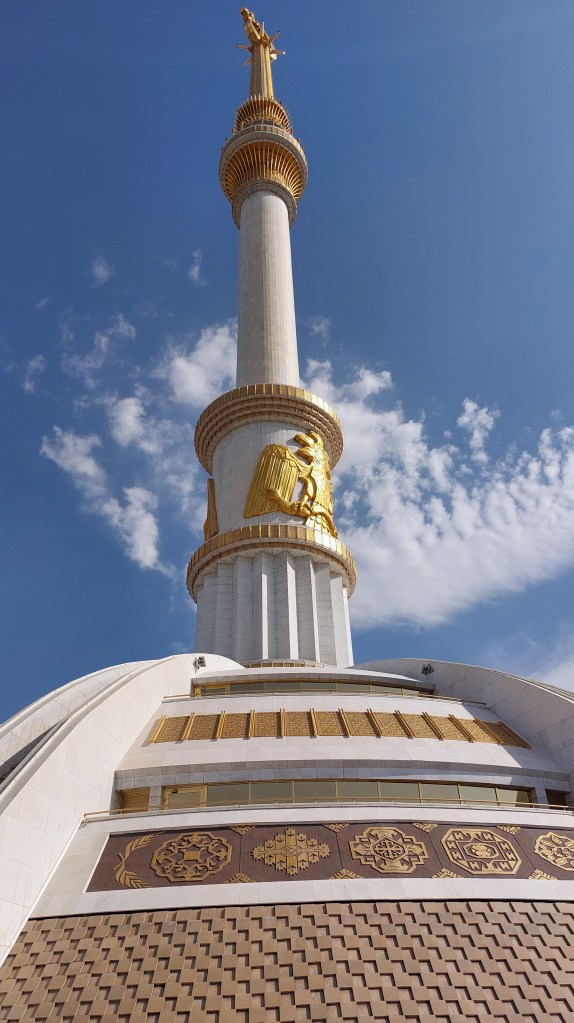 Just down the hill from the Independence Monument is a monument to the first president – solid gold, obviously (see photo and explanation on my Turkmenistan page: https://travelswithkathryn.blog/country-page-turkmenistan/)