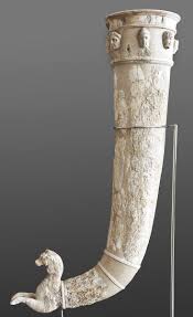The most important artefacts discovered at Nisa are ivory drinking vessels known as rythons. We saw these in the History Museum yesterday, and they were all found in 1 house in NISA. These were not actually used to drink from – wine would be poured into the top of the horn with a finger placed over a small hole at the bottom and smaller vessles filled from this larger rython. They were generally made/given to celebrate some military victory, so obviously, the owner of this house did rather well for himself.
