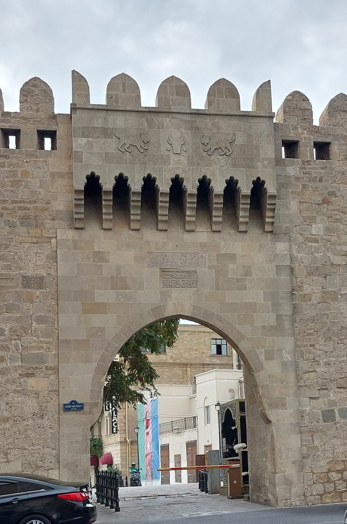 Originally, the city had two walls, the only surviving wall is the inner (higher) wall and an outer lower wall. Between the two was a moat filled with oil, which would be burnt if the city was invaded (Game of Thrones stylee). The outer wall was demolished in the 1880s as it was no longer needed. The photograph below shows the original entrance gates to the city built in the 12th century by the ruling Shirvanshah’s dynesty. The symbols of the lions and bull are their emblem: the lion is a symbol of power, courage and royalty, and the bull is a symbol of fertility, strength, and virility Apparently, that was exactly what you needed to protect the city.