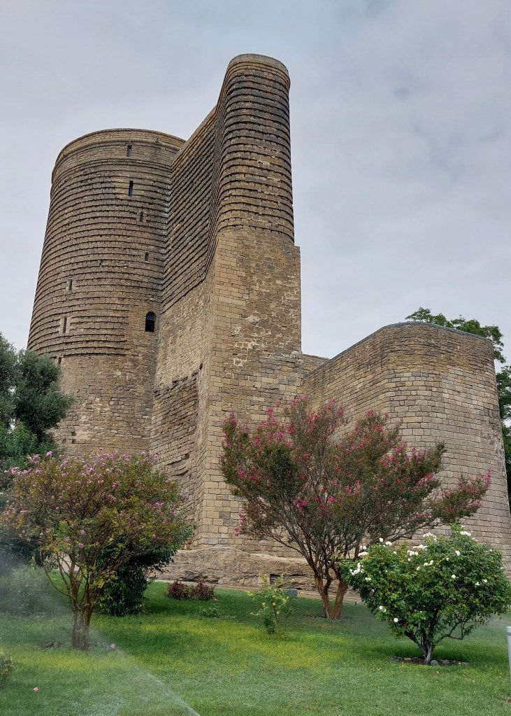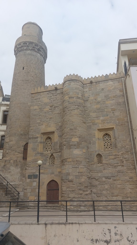 A short walk from the haman is the Maiden Tower, this is THE symbol of the city and it confuses historians and archeologists to this day. It was probably built in the 12th century i.e. the same time as the wall, but this is disputed as it was built with different stones from the wall and it does not refect Islamic design of this period/the walls. There is also disagreement as to why it was built, originally the Caspian Sea used to come to the base of the tower and it was either a watchtower, an observatory (the windows align to 1 direction like a calendar) or a Zororastian temple. In the 19th century it was used as a lighthouse. Over the years, it has inspired many tales of maiden’s jumping to their deaths including an Azerbijani ballet entitled “The Maiden Tower”.