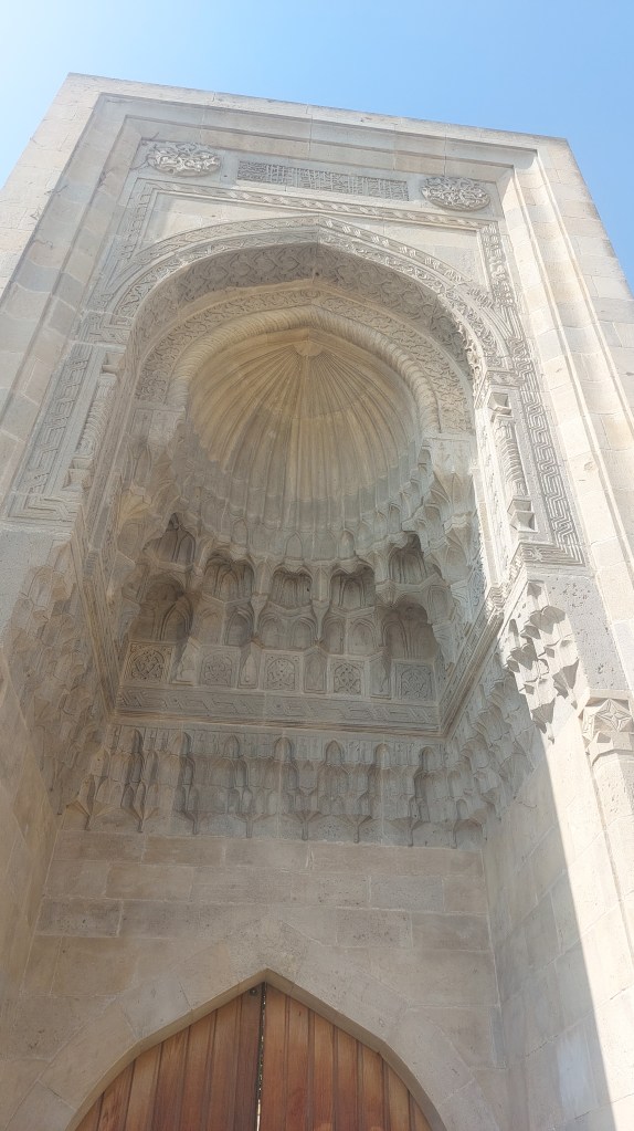 We also walked by (as it’s no longer in use/closed for visitors) Muhammed mosque, which dates back to 1078/9 and is the first building in Baku related to Islam. This triggered a discussion about Islam in Azerbijan. 96% of the Azerbijani population are muslim. However, Azerbijan is the 13th least religious country with only 1% of the population attending mosques even once a week. Azerbijan also has the second highest alcohol consumption of any Muslim country! However, although the country is not religioiusly conservative, it is culturally conservative – gender roles are still very much enshrined, and apparently it is unusual for women to be out alone after dark (which reflects what I have seen) and dress (for both sexes) is conservative.