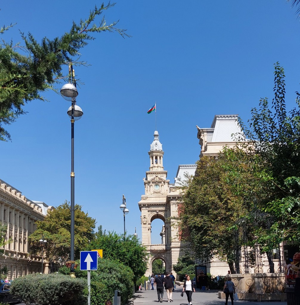 We then left the Old City and into Boom Town, heading along Istiqlaliyyet Street (used on the F1 circuit) with key buildings being pointed out. Boom town was built in the early 19th century when the rest of the Russian empire and Europe arrived to take advantage of the discovery of oil. In the 1900s, Azerbijan was producing 50% of the world’s oil, and these oil baron’s made themselves rich as a result. Many of them started building elaborate buildings using Polish architects borrowing heavily from French and Italian design.