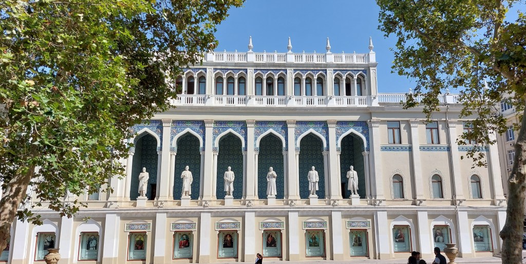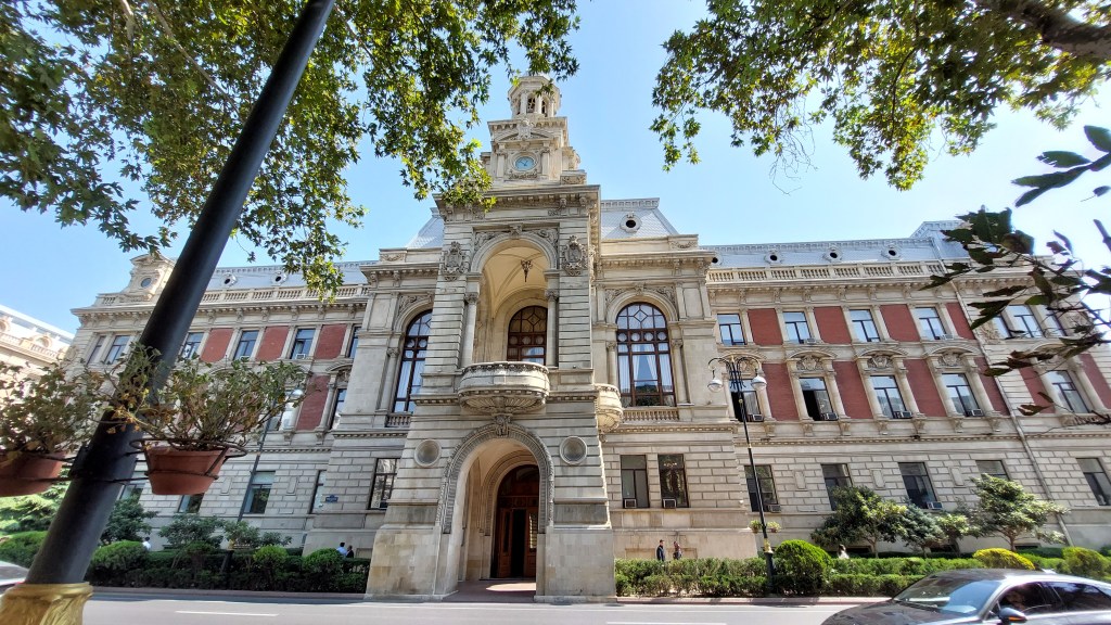 We also passed the building formerly housing the first Muslim secular school for girls in the Middle East, which opened 1898. Among many other philanthropic actions, it was founded (and funded) by Zeynaladbin Taghiyev. He was met with much resistance (I mean, why would you bother educating girls?!) from both the Russian government and Muslim clergy, but he argued that by educating girls they would pass this knowledge onto their families and stay to benefit local communities, unlike boys who tended to move abroad (sound familiar?). He eventually obtained personal permission from Empress Alexandra, and the school was named after her. In 1918, the school moved, and the building was given by Taghiyev to be used by the first parliament of the Independant Azerbijan – one of its first acts was giving women the right to vote. Independence didn’t last long with the Soviet’s invading in 1920 and staying until 1991.