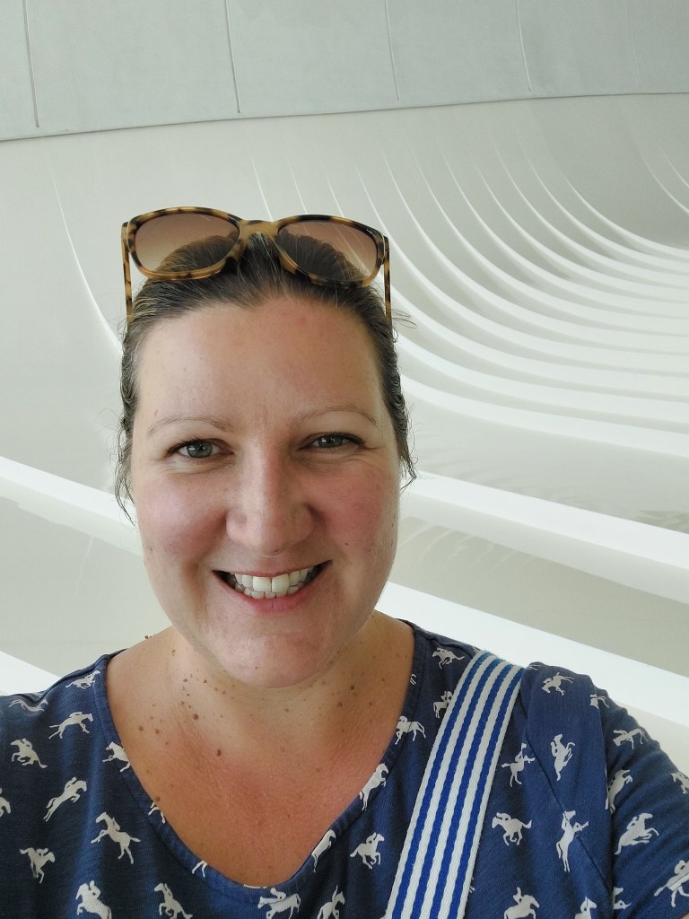 Inside the building it is just as amazing, even though the stairs were kind of scary! They were very shiny and curved to reflect the light and (as you can see) disappeared off to one side – yes, I went down them the speed of an elderly geriatric.