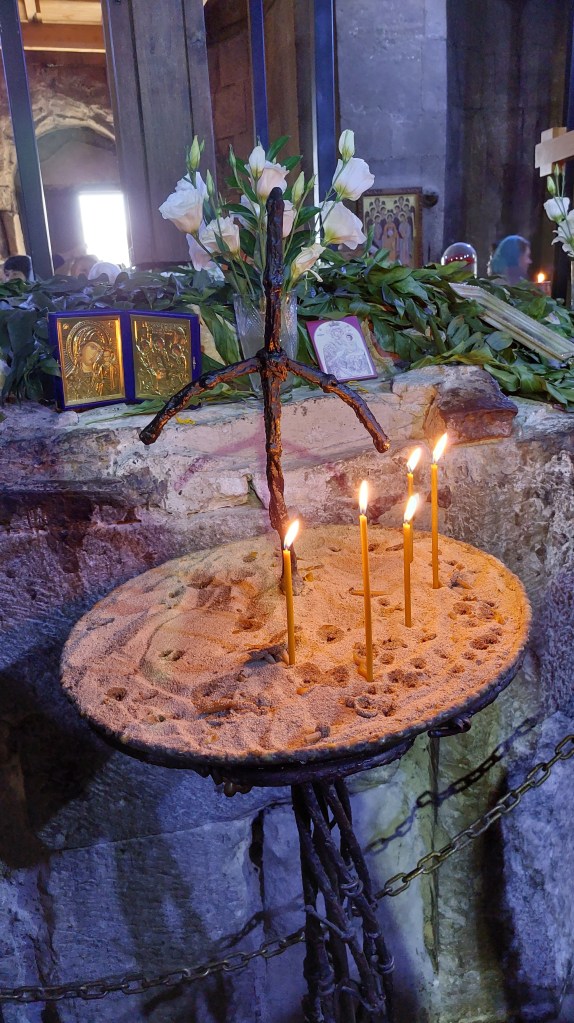 The church includes a replica of the famous wooden cross of King Mirian, which was apparently tied together with the hair of Sidona (more on her below). It occupies a lovely spot, but it was hard to get a sense of the spirtitally of the place with the hoads of Russian and Chinese tourists…