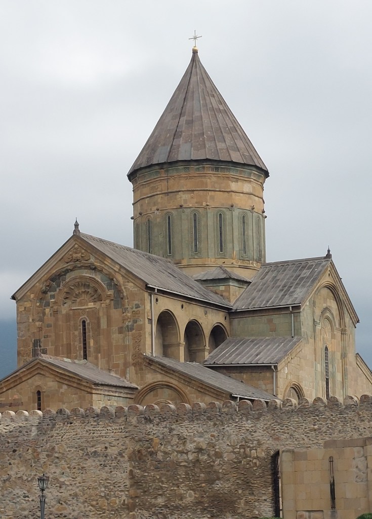 We then drove down the hill into Mtsheka itself to visit the Svetitskhoveli Cathedral. Until 2004, this was the largest church in Georgia, but then a huge modern church was built in Tblisis (very close to our hotel), which has taken over. However, for Georgians, it is still one of the most important in the country. The first church was built in the 5th/ 6th century, but what you can see below dates from the 11th century.