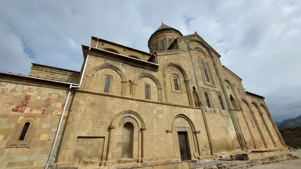 Yesterday, we loaded into the bus to drive the short distance to the old capital Mtskheta. As well as being the capital from the 3rd to the 6th century, it is considered the spiritual heart of Georgia with Christianity being established here since 327. Our first stop was the Jvari Church, which is perched on a hill overlooking the confluence of Aragvi and Mtkvari rivers. The current church was built in the 6th century, but a small temple exisited before then.