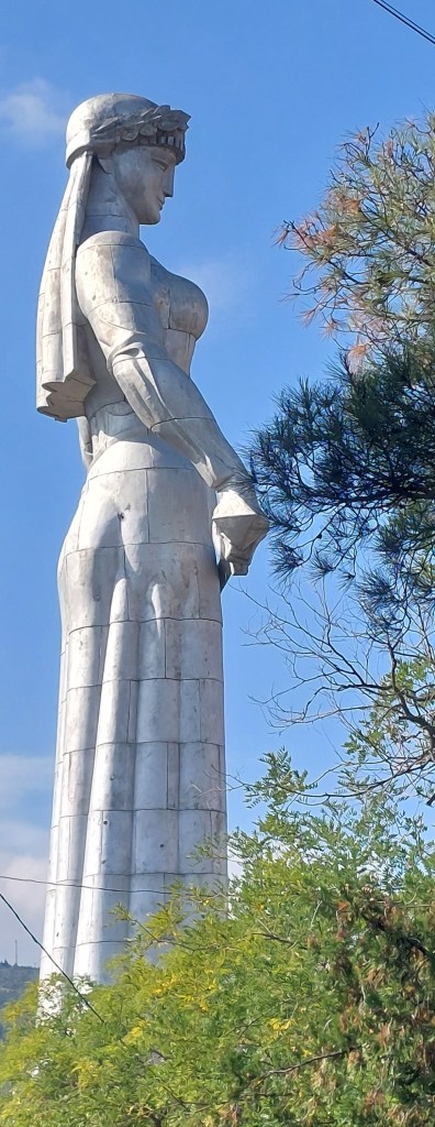 The Narikala Fortress dates back to 4th century when it was a Persian citadel, but all that has survived are the 8th century walls and we did a little walk along these (as we do like walking along a fortress wall) up to Kartlis Deda or Mother of Georgia:
