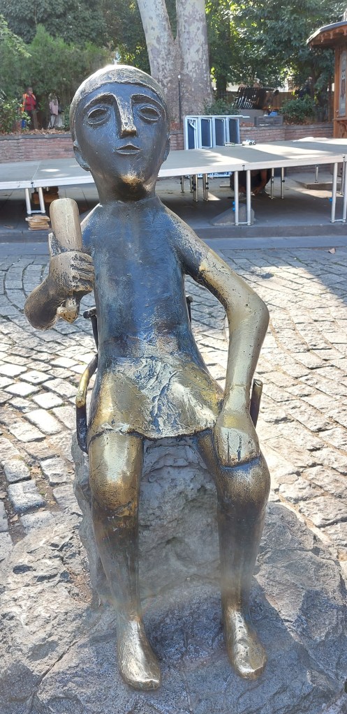 Back down on the cable car, and we walked across the Peace Bridge. this is a modern Italian desined bridge built in 2010 and at the time of building disliked by many Georgians as not being inkeeping with the rest of the city, however, people have subsequently warmed to it and it is now a popular hang out.