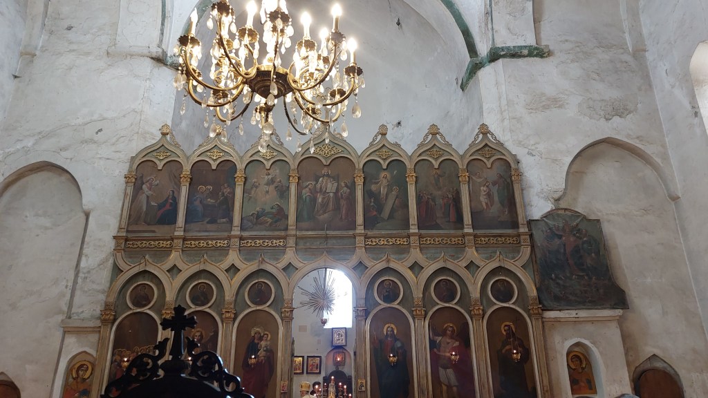 We continued all the way along the jorge to see the border with Russia. This is perhaps the closest any of us will get to Russia (and perhaps want to get) for quite some time. Right next to the border is a new 2012 church and monestary, maybe giving lorry drivers the chance to offer a prayer of thanks after having waited however many weeks to cross the border! This has always been a busy border crossing, but now it is one of the only land routes into/out of Russia and whatever we may think regarding the sanctions against Russia, there are any number of European lorries crossing this border…