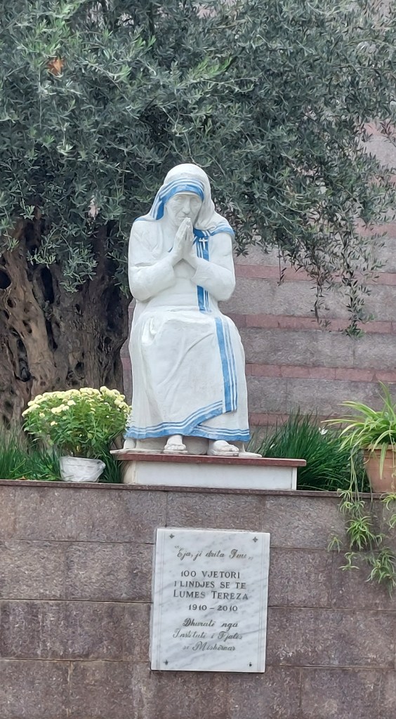 Now, I may not know many famous Albanians, but I did know one – Mother Theresa. Although she was born in modern-day Skopje (capital of North Macedonia), her parents were Albanian, and she considered herself to be Albanian, and the Albanians are keen to make sure everyone is aware of this. She helped to fund the building of the cathedral below, although due to the restrictions in Commnist Albania was never allowed to see it.