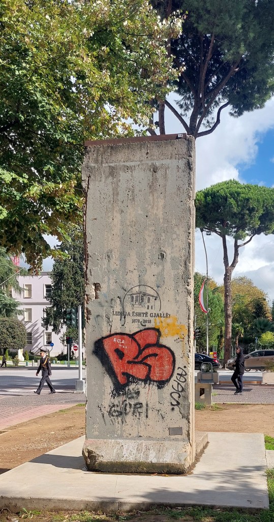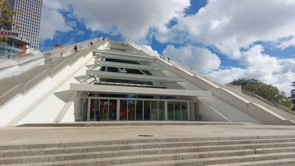 So, Albania is another country I know very little about and shall endeavour to absorb as much as I can whilst I am here. Therefore, this morning, my first actiity was my usual walking tour. Tirana is the capital and largest city in Albania, but a relatively new city only became the capital when Albania became independent in 1912. Our guide started with a very fast potted history of Albania, so here goes: in ancient times Illyrians and Epirotes lived in the area, but annexed by the Roman Empire in 2nd century BC and after the division of the Roman Empire became part of Byzantium. In the 12th century, an autonomous principality was established as well as various kingdoms across the country. In the late 15th century Albania became part of the Ottoman Empire until 1912 when it declared independence and after WW1 the borders were settled by the Treaty of London which left a lot of Albanians outside Albania (much like Armenia, there are more Albanians outside the country than in it). One of the best named leaders of Albania was Ahmed Muhtar Zogoll, who ultimately declared himself as King Zog I between 1928 and 1936. Independence lasted until 1939 when Italy invaded, and then Albania became a protectorate of Nazi Germany. Following the war, the Communists rose to power led by Enver Hoxha (more on him and Albanian Communism below) and remained in power until the 1991 revolution. And breathe…
