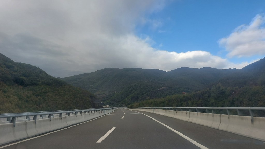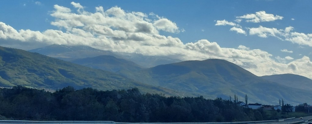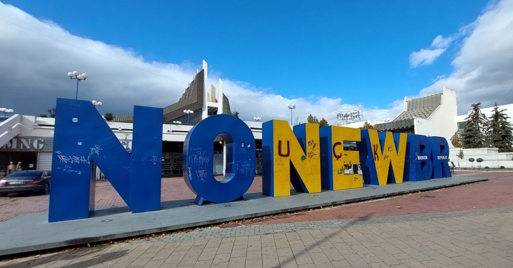 Today, we set off from Skopje and drove the short distance to Kosovo (no stamp, sadly, but I am definitely here!). Kosovo is the newest county in Europe (partially recognised – more on this below) and is one of the few modern examples where a rebel group wanting independence actually won. So, Kosovo shares a similar history to many of its neighbours being conquered by the Romans, then the Byzantines, then the Bulgarian Kingdom, then the Serbian Kingdom and then the Ottoman Empire. In 1913, Kosovo was ceded to Serbia and became an autonomous province within Yugoslavia. Tensions between Kosovo’s Albanian and Serb communities escalated through the 20th century and culminated in the Kosovo war of 1998/9, which the Kosovo Liberation Army (KLA) won and the Yugoslav army withdrew. Kosovo unlitateraly declared its indpenedence from Serbia in 2008 and has gained recognition of 102/193 UN member states. Kosovo today is the 2nd poorest country in Europe (it was the poorest until the war in Ukraine) and is mostly ethnic Albanian and Muslim. Many people visit Kosovo for just a day, but I felt I should at least spend an overnight (and thus pay for a hotel room).