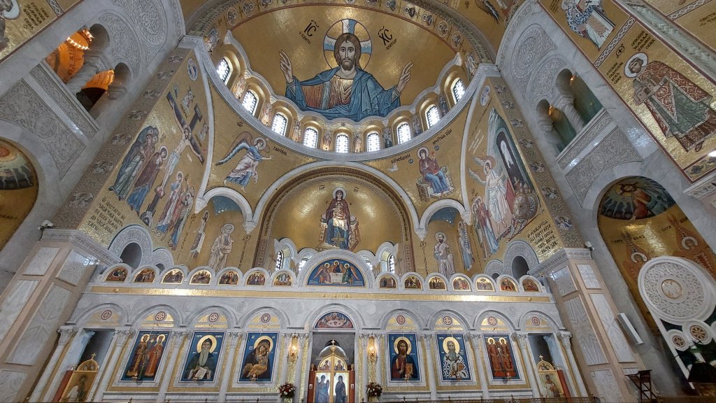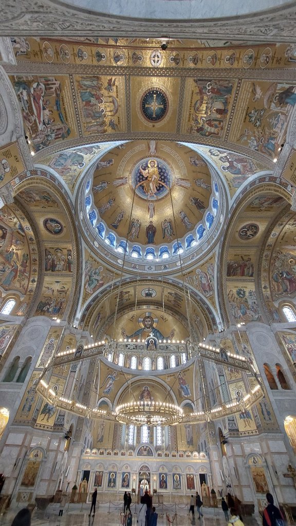This is a modern Serbian Orthadox church built on the location of the grave of Saint Sava (clue in the name there), who founded the Serbian Orthodox Church. A church had been planned here for many years, and several competitions were held to select a design (and there are a number of funny and somewhat controversial stories there) before finally settling on a design in 1932 and it is modelled on Istanbul’s Hagia Sofia. The building started in 1935 but then stopped when Yugoslavia was occupied during WW2, and the Germans used it as a storage depot, and the Tito did the same. It took the Orthodox church until 1985 (and many, many letters to Tito) before building commenced again – and is seen as one of the signs that communism was falling in the region. It is also HUGE, it is 91m long, 81m high, with a 30m central dome and can hold 10,000 people – it is currently the largest Orthodox church in the Balkans and is one of the largest churches in the world. The interior (all 12,000m2) is completely covered in gold mosaics, but interestingly, the cost of this has been funded by Russia. In 2009, Russian president Dmitri Medvedev visited the church and was asked if Russia would fund part of the interior decoration, he said they would fund it all – Vladamir Putin continued this support when he visited the church in 2011. As of 2019, Russia had donated around €10 million of the total cost of €100 million, which has been spent on the church. I am not going to repeat my views on where money could be better spent, particularly in this region, but I felt very much the same way looking at this church. I mean, it is very nice, but…