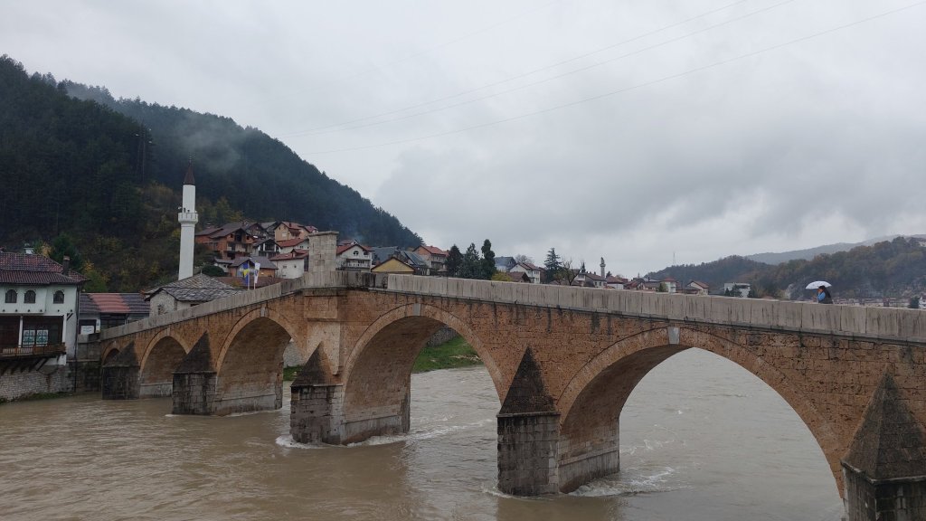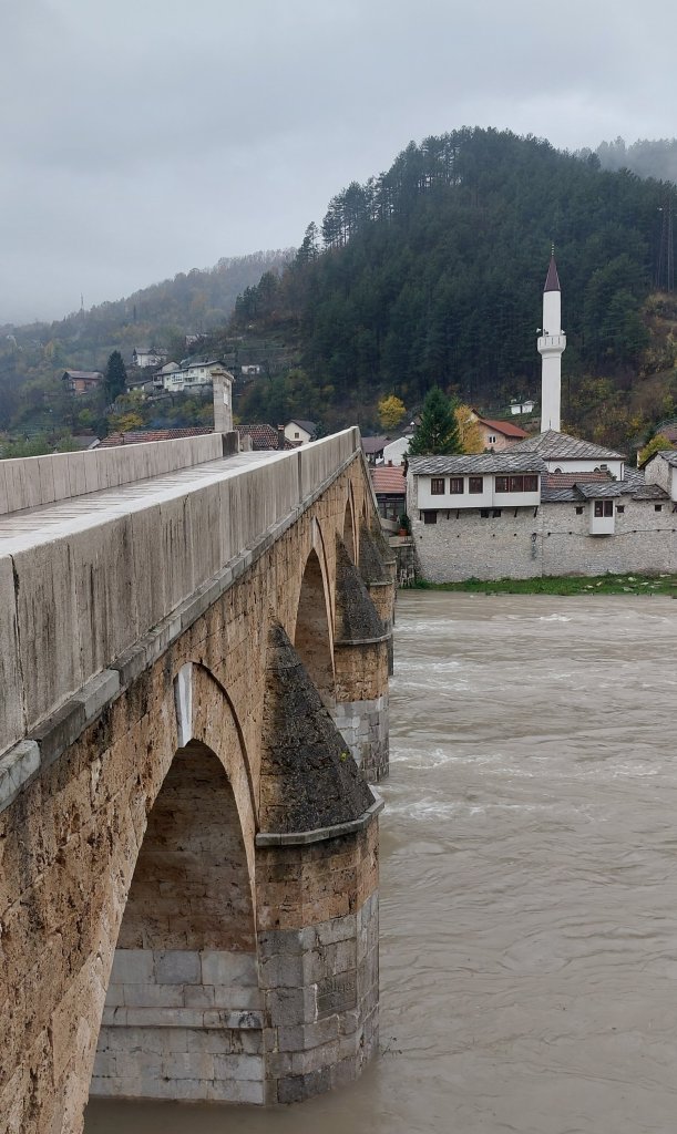 As we drove over the mountains, we were suddenly driving through snow! My first snow of the trip – whoop! After a couple of hours, we arrived in Herzegovina and our first stop of Konjic. This is a stop on the tourist route for two reasons: (i) the 15th century Ottoman bridge; and (ii) Tito’s bunker (closed) built sectretly by Tito for him and his cronies in the event of war, but never actually used