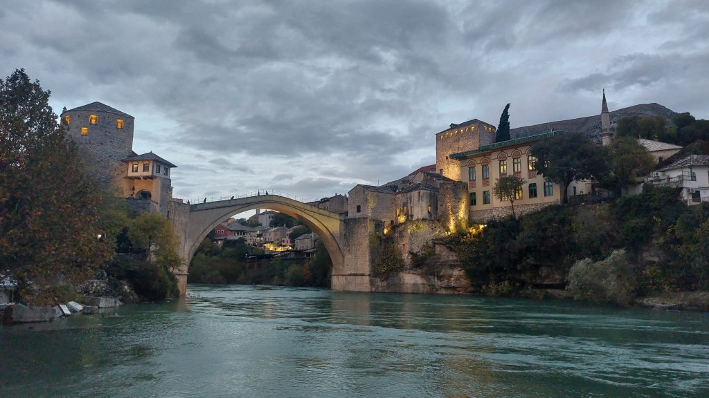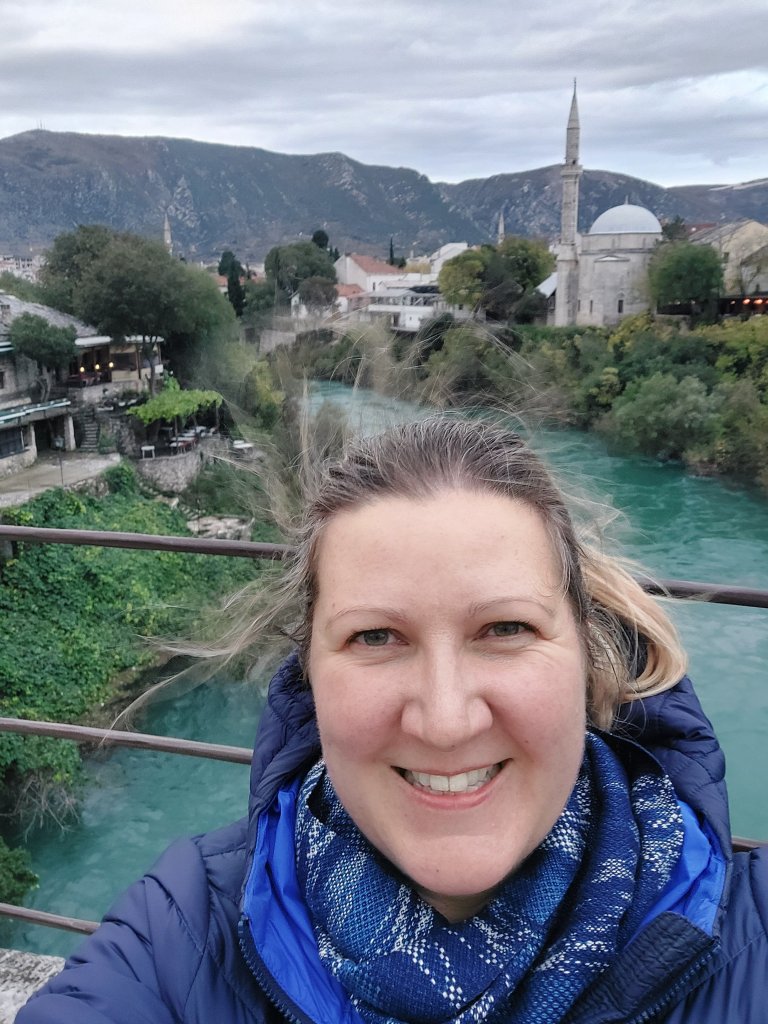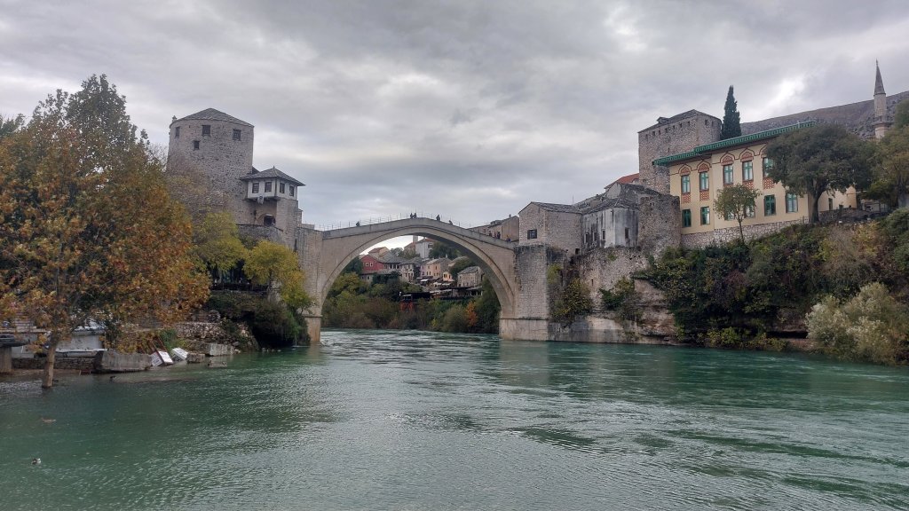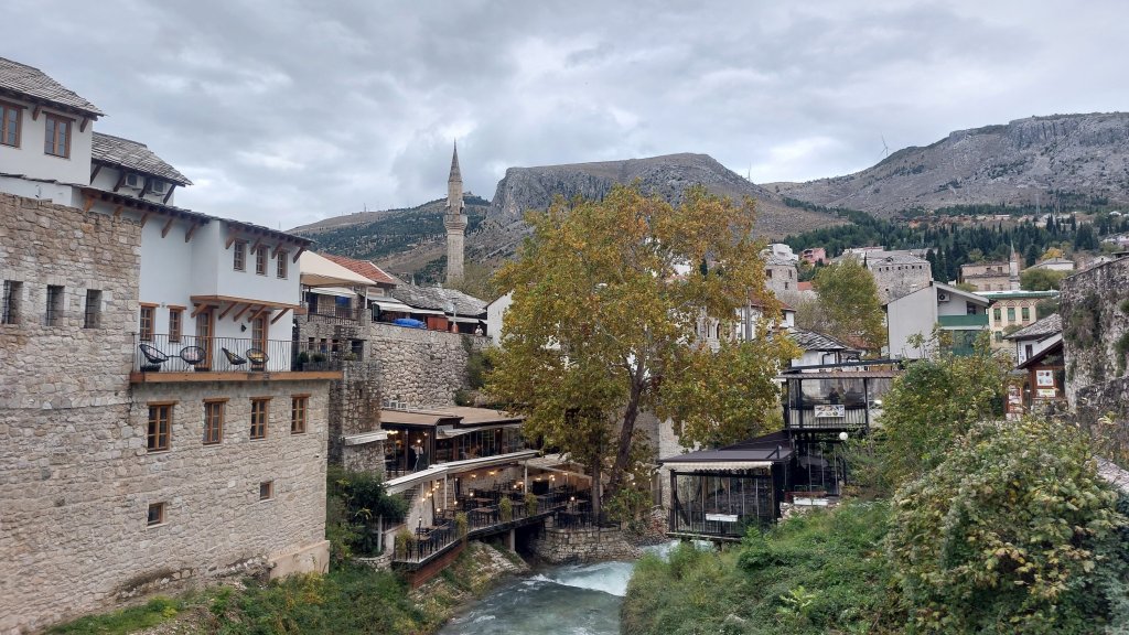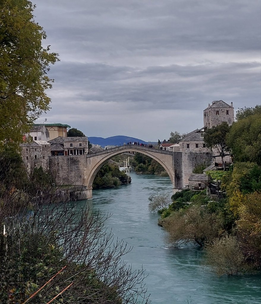 Our final and main stop was Mostar. Mostar is the most famous place in Herzegovina because of its bridge. The original Ottoman bridge was destroyed by the Bosnian Croat army during the Yugoslav War in November 1993 and was rebuilt by a coalition of the World Bank, UNESCO, the Aga Khan Trust and the World Monuments Fund between 2001 and 2004. The bridge is 22.5m tall, and in Summer is a favourite bridge diving location – having had a look over the edge, I am not sure I would fancy it! Mostar has a beautiful old town and includes a number of bridges and many, many tourist shops. Like Sarajevo, Mostar has a clear divide between Ottoman and Austro-Hungarian architecture, and according to the guide, the city is also split along religious lines with the Bosniak muslims generally living in the Ottoman area, and Catholic Croats generally living in the Austro-Hungarian area. This is the first country I have visited from former Yugoslavia where you can clearly see the divisions between the ethnic/religious groups and although the war may have ended nearly 30 years ago, it is still raw in the minds of local groups. More on this tomorrow, but for now, let us just enjoy Mostar: