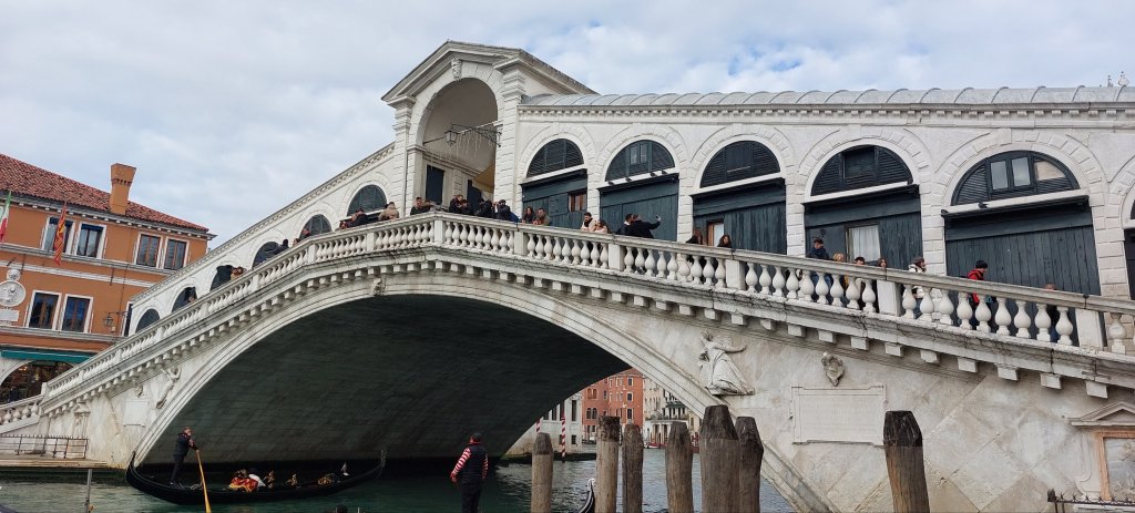 My first stop was the Rialto Bridge. This is the oldest of the 4 bridges crossing the Grand Canal and the first wooden floating bridge was built in 1173, but as the Rialto market on the eastern bank became more important, a more stable structure was needed and a wooden bridge was built in 1255. During the 15th century, shops were built along the sides of the bridge, and the rent from these shops helped to pay for its maintenance, although evidently not enough as it collapsed on more than 1 occasion. My favourite story is the collapse of 1444 when it collapsed under the weight of a crowd rushing to see a wedding (must have been very fancy!). The current stone bridge was built in 1591 and has the same design of covered ramps on each side of shops. You can tell you are in tourist land now, as trying to get a photo from the top of the bridge requires sharp elbows!