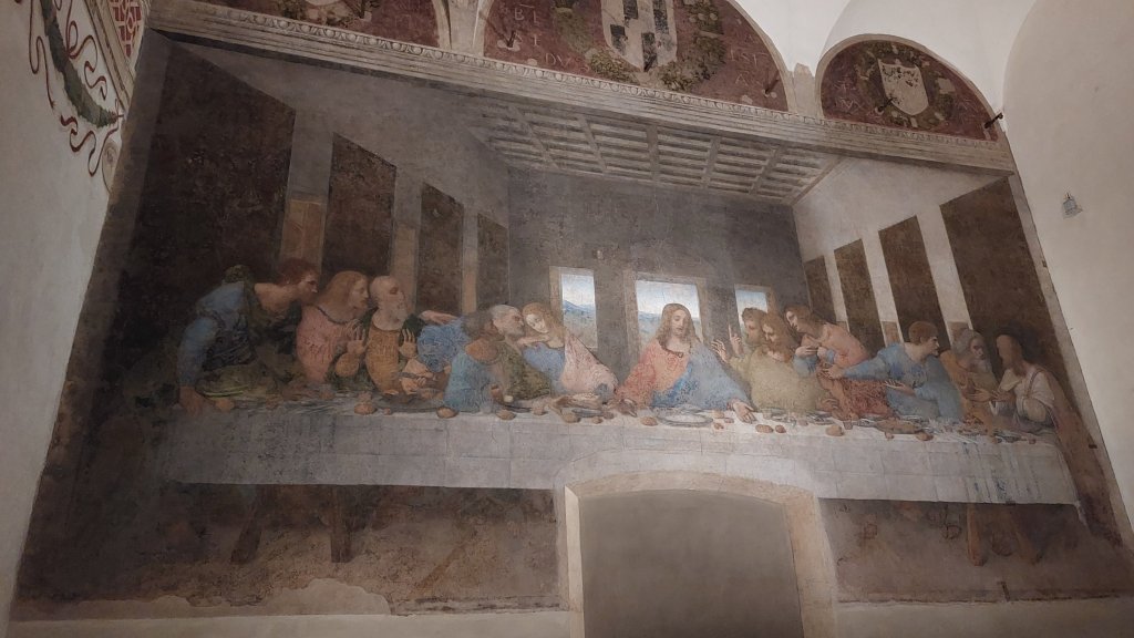 Now, onto my reason for coming to Milan. I wanted to see The Last Supper. Now, tickets for The Last Supper go on sale 3 months before the date when you want to visit. I tried for every day we were going to be in Milan back in May, and for this trip and failed – I therefore TMaP’d and purchased a guided tour to see it this afternoon. The Last Supper is one of the most recognisable images in the world, but still, I think we would all benefit from a little referesher. The Last Supper is a fresco created by Leonardo di Vinci, who was commissioned by the Duke of Milan Ludovico Sforza in 1494 for the refectory of the Convent of Santa Maria della Grazie. A painting of the Last Supper is traditional for refectories, but this was usually painted showing the moment when the bread is sanctified, however Leonardo di Vinci wanted to capture the moment when Jesus tells his disciples that one of them will betray him (from the Gospel of John). Therefore, he is able to capture 13 different human reactions to such news.