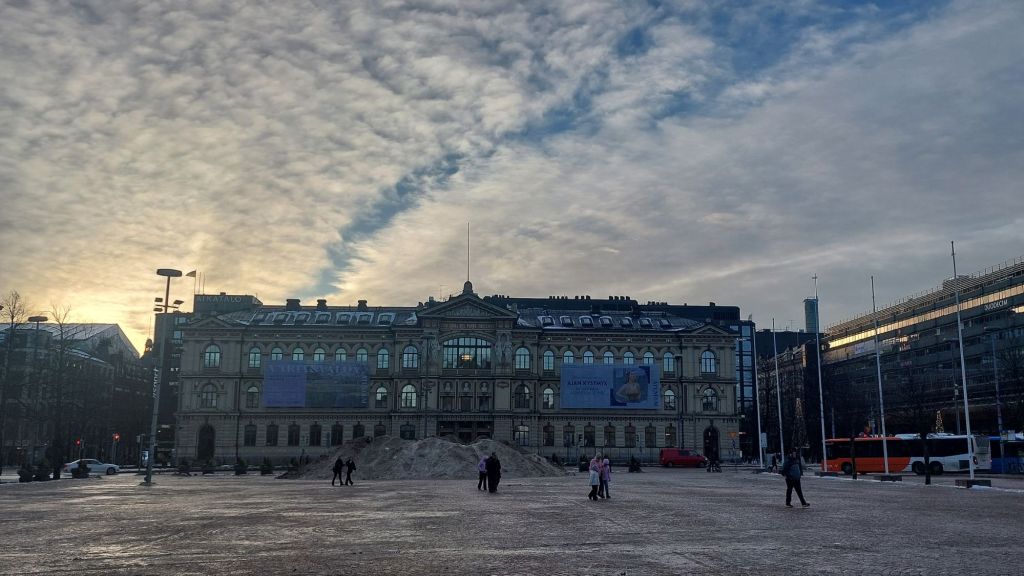 Excitingly today we did actually see the sunshine which is unusual for Helskini, but unfortunately this does mean that much of the snow is melting and in places turning to ice so we were walking very, very carefully. I am very relieved I brought my boots otherwise I would have been screwed! Anyway, we did some orientating, e.g., where the supermarket, ATM, etc, and a pointing out of some of the key sites.