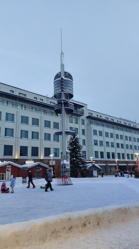 Having been in a remote part of beautiful Northern Lapland, arriving into Rovaniemi was something of a shock. Rovaniemi (in addition to being famous for Santa Claus’ village) is the capital city of Lapland and has such things as an airport and thousands of tourists. However, it is not pretty and more than Finnish levels of busy, i.e. I am not sure we’ll cope.