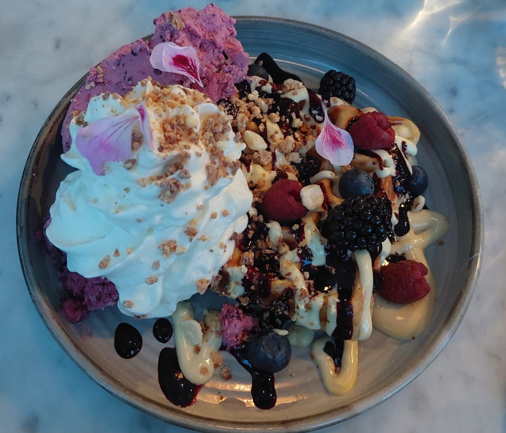 I met up with Jess (from my group who was also having the extra day in Rovaniemi) for lunch, and I was genuinely planning to order the ceaser salad for lunch, but then I realised that it was Christmas, I was on holiday, and they had waffles: