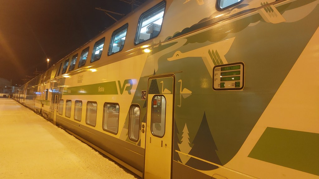 I am writing this on the train from Rovaniemi to Helsinki, which I had expected to be busy (it being Christmas Eve after all?), whereas I appear to be on my own. However, this is a 9 hour journey, so I am sort of expecting people to board at the stops along the way – 2 hours in and no sign of anyone else so I will let you know!