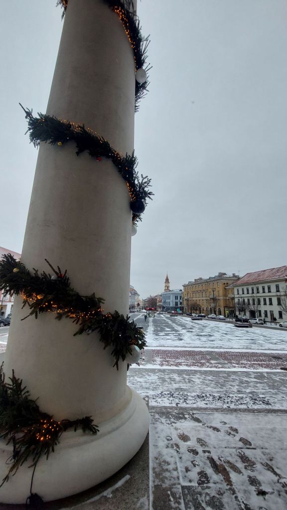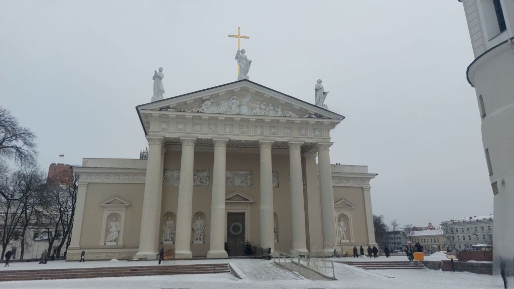 Our final stop was Cathedral Square, which (as one might guess) is the location of Vilnius Cathedral. The cathedral is the main Catholic cathedral in the city and is the last of many churches on this first (the first dating back to 1251), and this is a renovated 17th century creation. Inside, it’s not overly Catholic, and there was some organ rehearsing going on, which made it a delightful place to defrost slightly.
