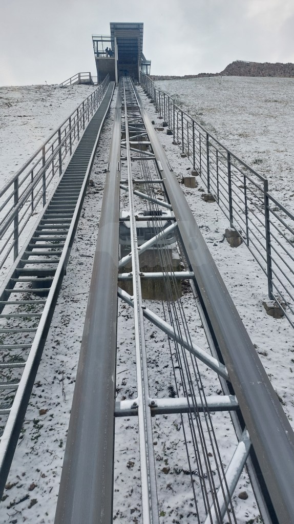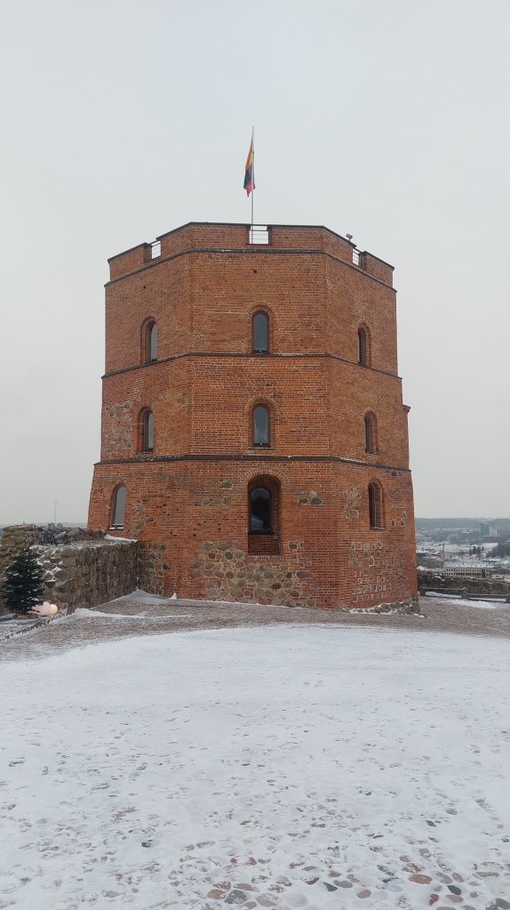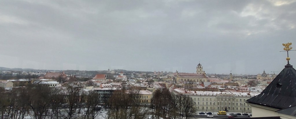 After the museum, I headed back into the centre of Vilnius to climb Gediminas Tower, which is part of the upper complex of the Palace of the Grand Duchy. I did consider climbing the stairs/hill, but it was cold and slippy, so at my age, I thought the safer option would be €2 return on the funicular. You know I love a funicular!