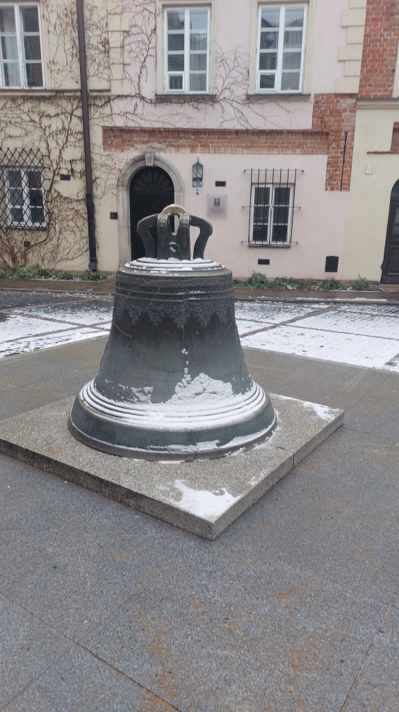 Our next stop was a small square behind the cathedral known as Little Amsterdam Square because of the Dutch style houses on one side of the square. It is also home to the narrowest house in Warsaw/narrowest tenement building in Europ (pictured below) and a broken bell. It was an odd choice one might think, but this bell was ordered by the King from a German maker in 1645 for the cathedral. Unfortunately, in casting the bell cracked, and then for some years, people were unsure what to do with it. However, on his death, the maker was buried in Wasaw in the cemetary that this square is built on top of, and this bell has been reunited with its maker. It is said that if you rub the bell, the bellmaker will grant your wish. I made one, so I’ll let you know what happens…