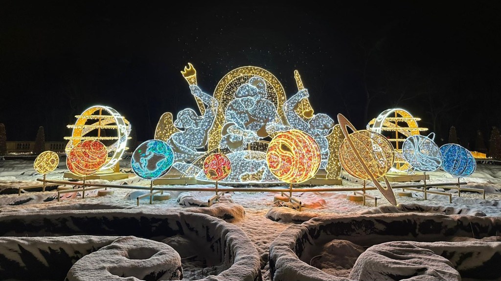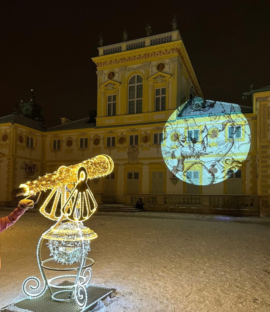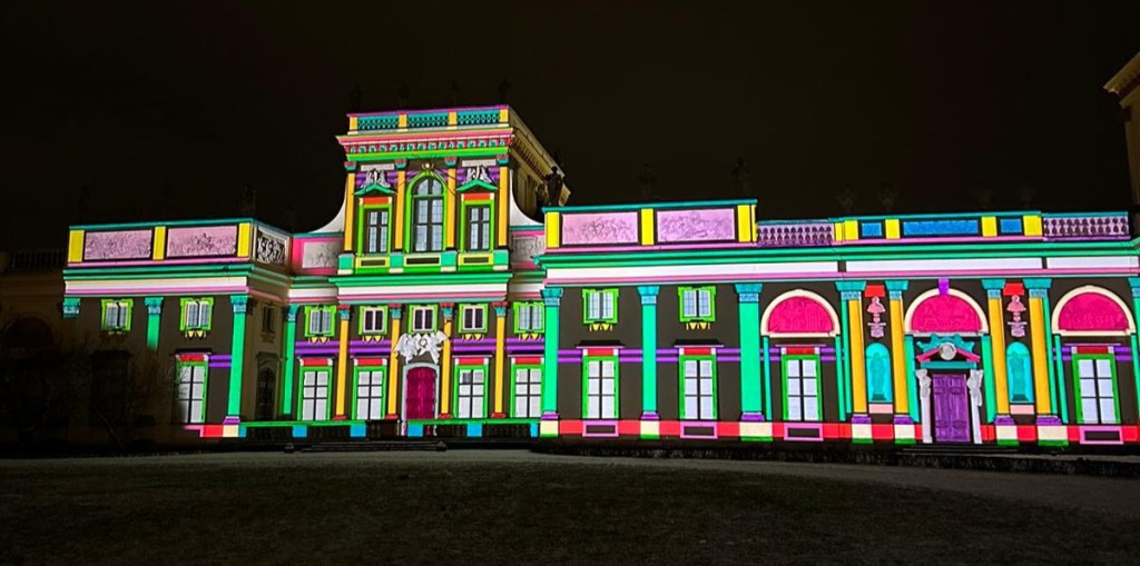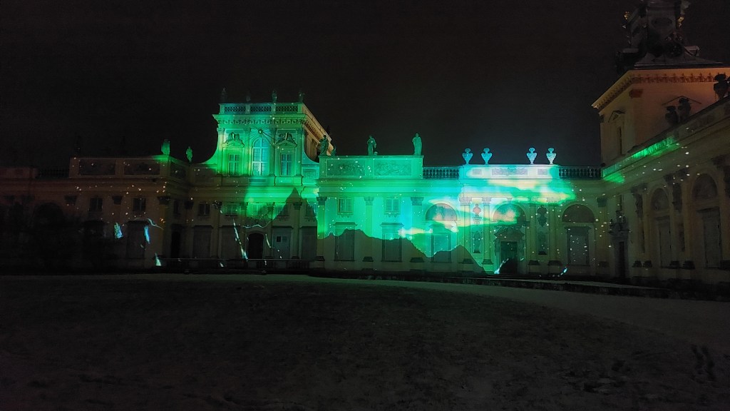 I did a condensed version of the Walking Tour for Steph to enjoy, and then we stopped for perogis and a warming sit before heading to King Jan III’s Palace in Wilanów which is about a 20 minute taxi ride outside of Warsaw. So, you would assume it would have taken 20 minutes from ordering to arrival? Nope. Warsaw Bolt drivers seem unable or perhaps unwilling to wait in a very small queue of traffic in order to collect us. Two drivers got within probably 300m of us before heading off in the opposite direction! Finally, we walked along the road to the problematic junction and only then were able to get in a taxi. It only took an hour, by which time we could probably have caught the bus which I had decided against due to the time. Maybe the world is trying to teach me the downside of TMaPing? Anyway, the reason for our visit was not to visit the palace itself, even though it is the oldest in Poland and considered the best repository of the country’s culture and heritage (according to Google), but for the light show. I do love a lightshow – good ones like Kew Gardens at Christmas, not rubbish ones like the one at Shugborough!