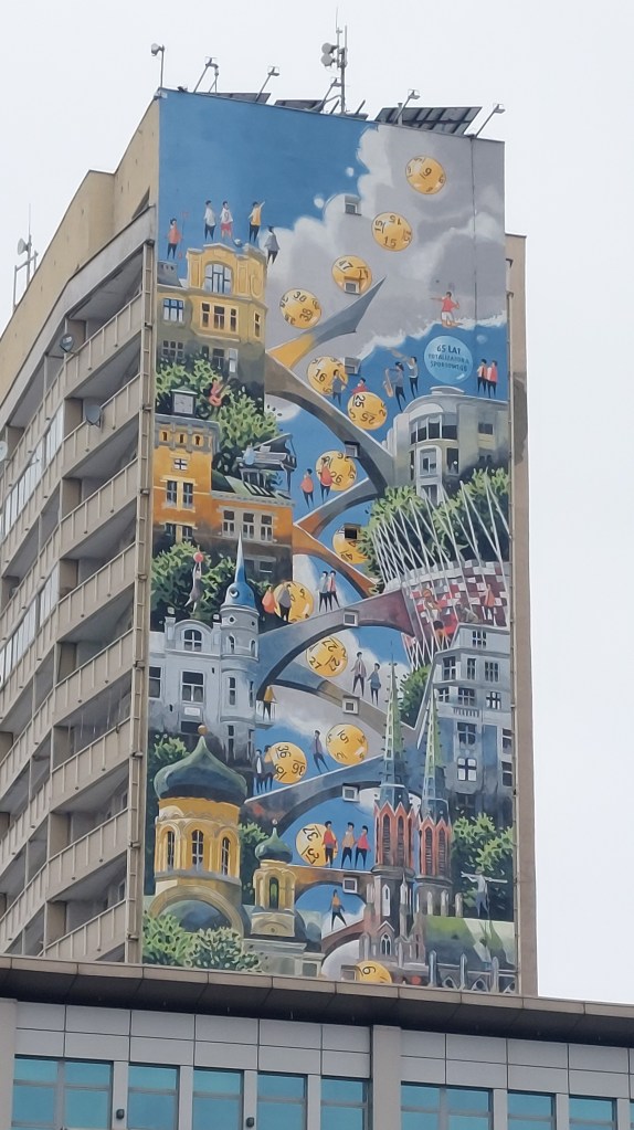 We then left the Old Town via the reconstructed city walls, and into the “new” city which was built in the 16th century as the Old City was now too small to house everyone, so permission was given to build a new city outside the walls (which were no longer really that useful given developments in artillery!). Much of this area was destroyed during WW2, and replaced with soviet blocks, but a rebuilt building was where a very famous Polish scientist was born – Marie Curie was born on the top floor of the building pictured below. Marie Curie surely needs no introduction, but suffice to say she was the first woman to be awarded a nobel prize, the first idividual tohave two and the first person to win a nobel in two diferent scientific fields. Impressive to say the least.