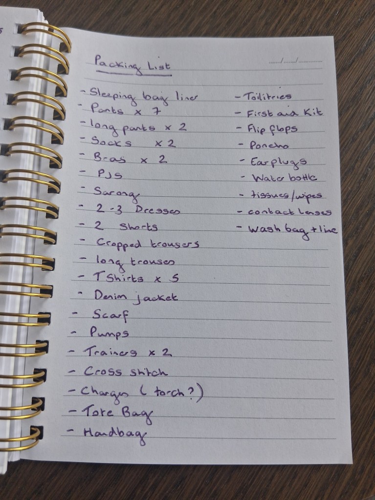 - Packing – I feel I have left my packing a little late as instead of my usual packing a month before, its 5 days to go and this is where I am: