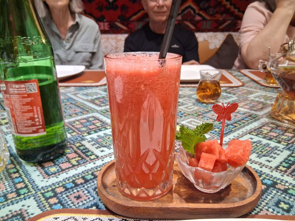 I spent my afternoon having a little wander around the old town (but more on this once I have had my official tour of the old town) and then a little relax before dinner. Disappointing this hotel room’s toilet does not even have an automatic flush, I feel we have been downgraded… Anyway, we went for a Turkik dinner (which I failed to photograph), but I think you all know what a lamb kebab and pide looks like? I did photograph my watermelon juice, though: