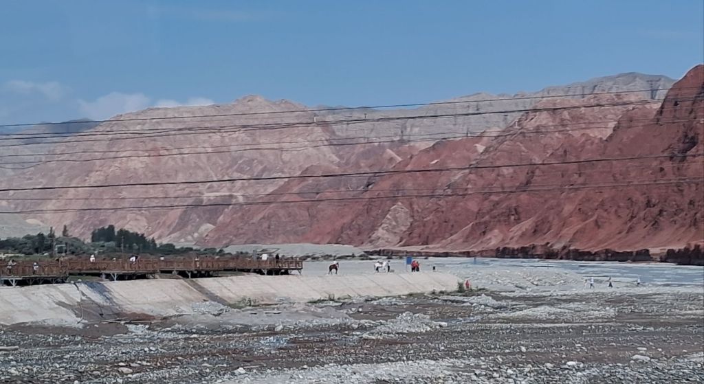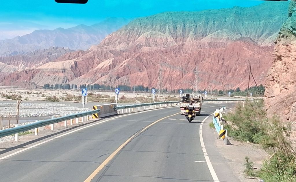 Anyway, I am jumping a little ahead of myself. We left Markit this morning and drove 2.5hrs along the edge of the Taklamakan desert to Kashgar, and you can certainly tell you have left the small towns and have arrived “somewhere”. Kashgar means “bank of the river” and the Kashgar Prefecture borders 5 countries and has a population of 4.7 million people. The original Kashgar was first inhabited over 1,600 years ago, but that has now been observed into the Taklamakan desert. The old city of today’s Kashgar has been mostly destroyed (it would have been completely been destroyed had there not been an international outcry), but even so, today it is very much a rebuilt and santisied version of what one would expect from a Central Asian city. For example, my 2019 guidebook stars “the Grand Sunday Baazar” which disappeared in 2022…