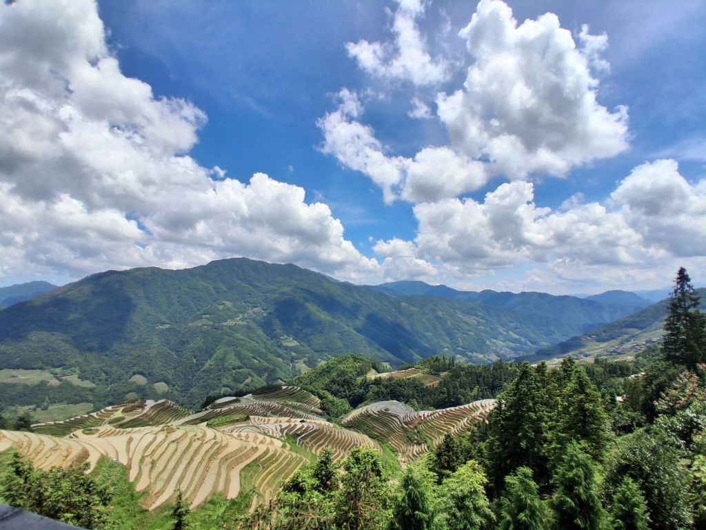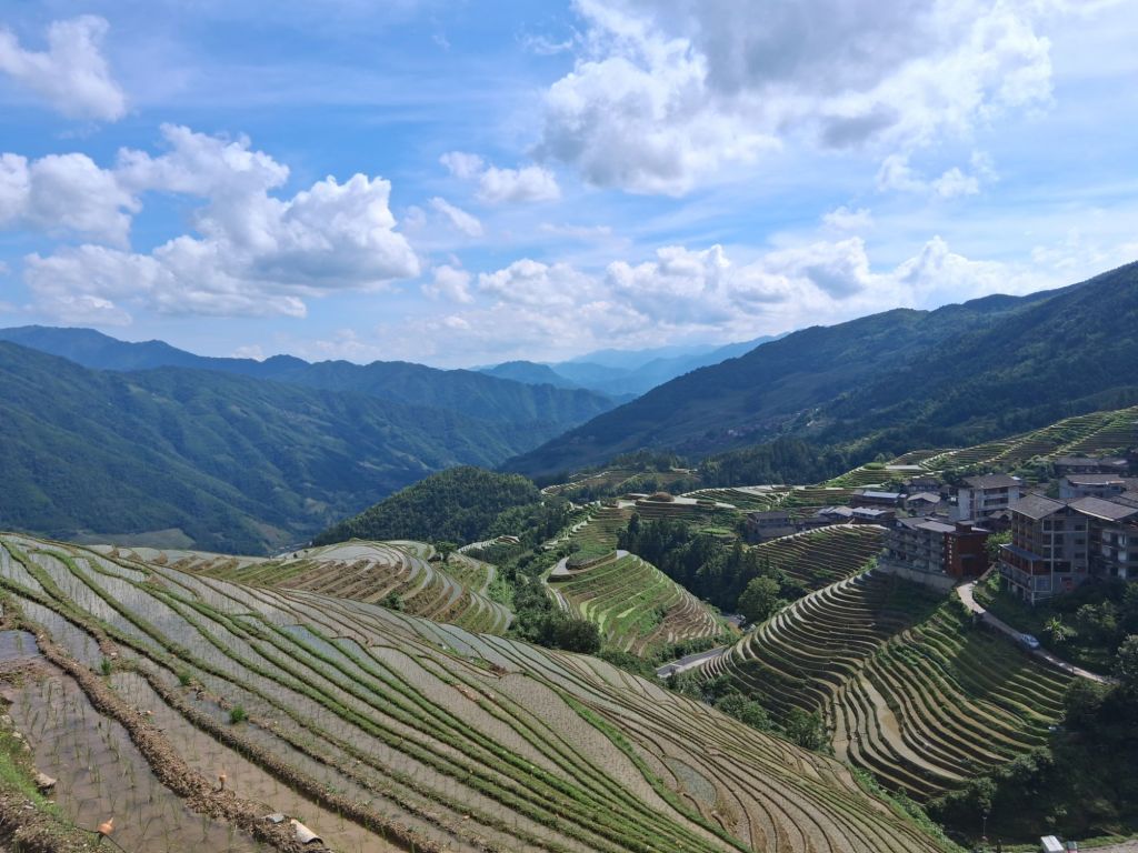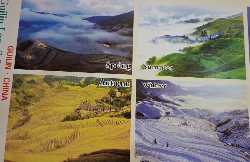 Kevin was waiting for me at 9am as agreed (I managed to avoid getting incvolved in a morning exercise class) and we headed off to the “Guilin Longji Terraces Scenic Area” (you guessed it, passports and ticket purchasing required) which is about a 2 hour drive from Guilin. These are how over 2,300 years ago (the Yuan dynasty) local people cultivated the steep valleys in order to grow that staple crop – rice. Apparently, these did not become a tourist “thing” until the 1990s when a photographer named Li Yashi moved to the area and its his photographs that put Longji on the tourist map (and my list). Interestingly according to Kevin, tourist numbers are way down since pre-Covid and maybe its not having the same draw for Chinese tourists (who prefer the theme park experience) although I did see a couple of Westerners, but not many…