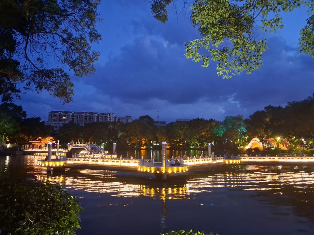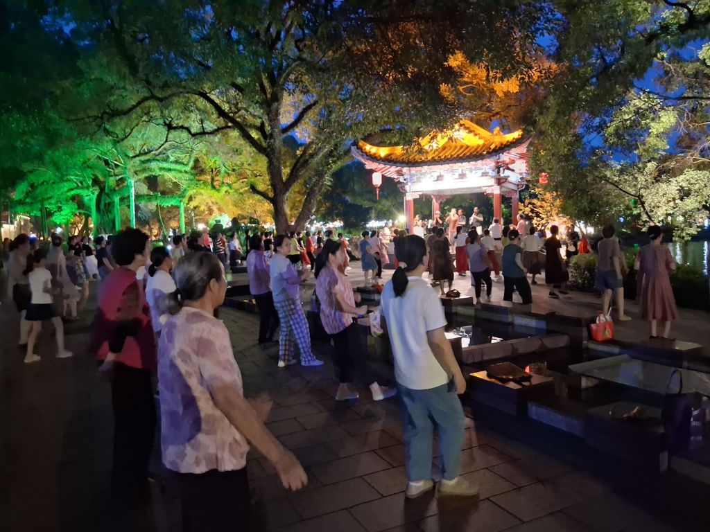 By the time I returned to the hotel it was 7pm so I decided I would have a quick refresh (no point doing more than that as its still very hot and humid) and head to the Xicheng Road Night Market. This was something of a disappointment. Four stalls does not a market make… However, I did get to have a lovely wander around the lake which as its now a little cooler is being frequented by locals out for an evening stroll, or even, taking part in mass dance work outs again (I may even have joined in briefly)!
