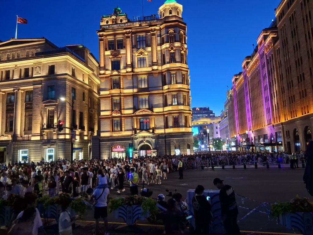 Up to the Bund for sunset and to see the last lights of Shanghai. Oh, the hoards of people are all doing the same thing, but understandably as it’s pretty impressive. I am not sure I can think of another city in the world where you can watch it light up along the water…