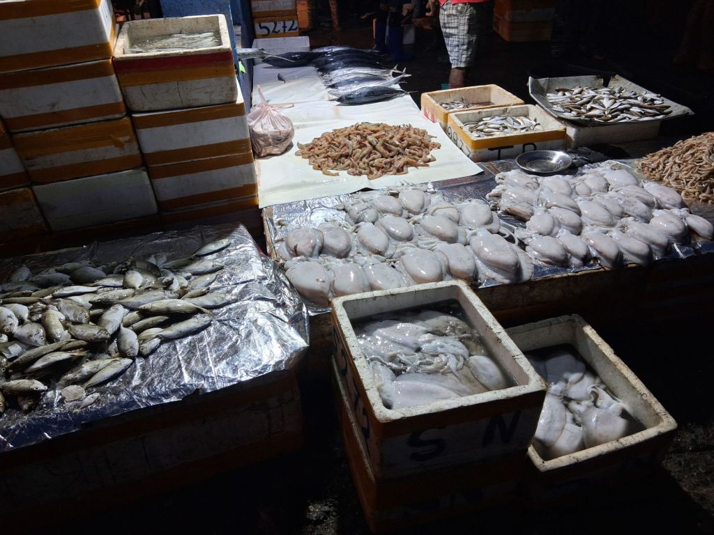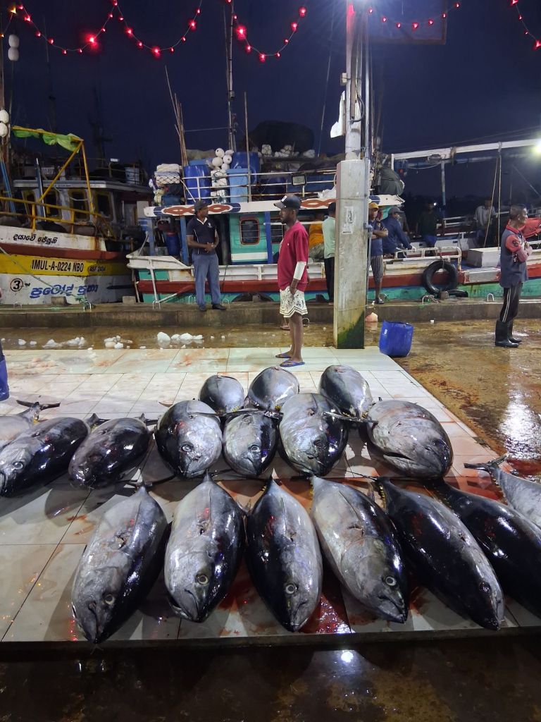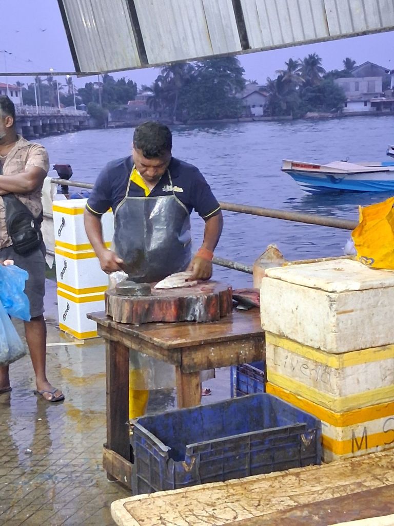 So the Negombo Fish Market is the only thing detailed in my guidebook as a must see in Negombo. This is the second largest fish market in Sri Lanka with around 400 boats unloading their catch here. Well, I am pleased that I went. It starts at around 2am when trawlers come in, and runs until all the trawlers are in and the fish is sold. This is the wholesale market and I had expected fish, but was not really prepared for the massive sharks, piles and piles of fish and seafood and the number of trawlers. Tuna are really big – who knew?